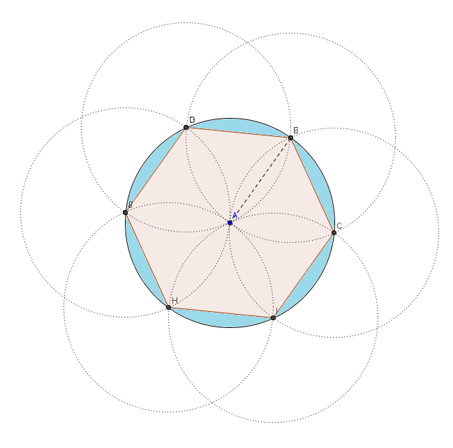(d) Calcule el área de la región del plano comprendida entre la circunferencia y el contorno del hexágono.